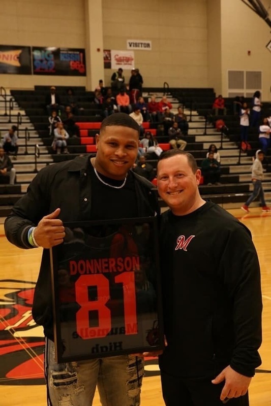 MAUMELLE, Ark. -- Former Maumelle High School football star and current NFL linebacker Kendall Donnerson came back home to Maumelle High School for a big honor. The school presented Donnerson with his jersey before the Maumelle Parkview basketball game. Donnerson went to Southeast Missouri State and now plays for the Raiders.
